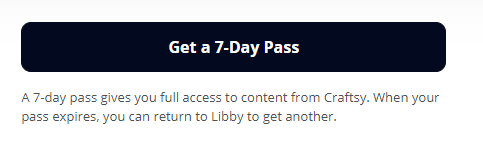 Craftsy can be checked out for 7 days at a time. When it expires, you can go back to Libby and check it out again. There are no waiting lists. Click on the "Get a 7-Day Pass" button.